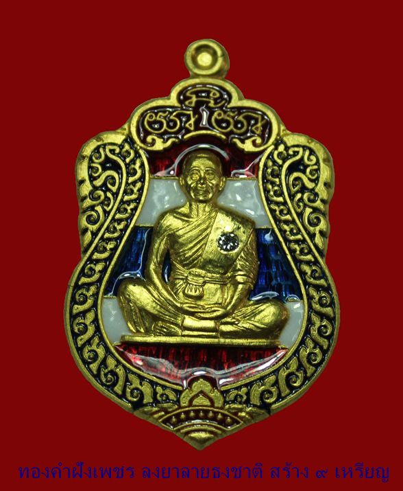 เนื้อทองคำฝังเพชรลงยาลายธงชาติ สร้าง ๙ เหรียญ