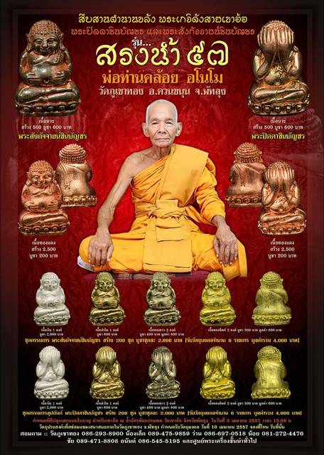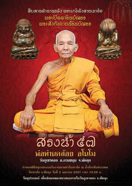 วัตถุมงคล "รุ่นสรงน้ำ๕๗" พ่อท่านคล้อย อโนโม วัดภูเขาทอง มหาพิธีอธิษฐานจิตปลุกเสก โดยพระเกจิอาจารย์สายเขาอ้อ จำนวน 10 รูป
