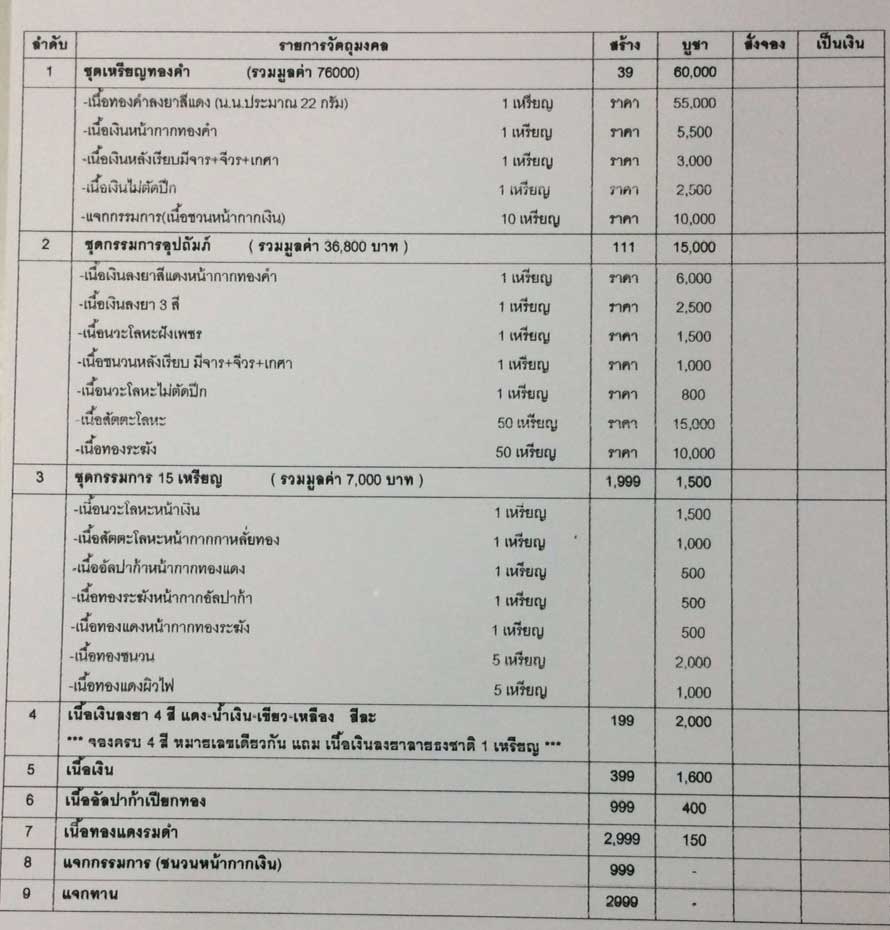 ชุดกรรมการ 15 เหรียญ ราคา 1500 บาท เฉลี่ยเหรียญละ 100 บาท