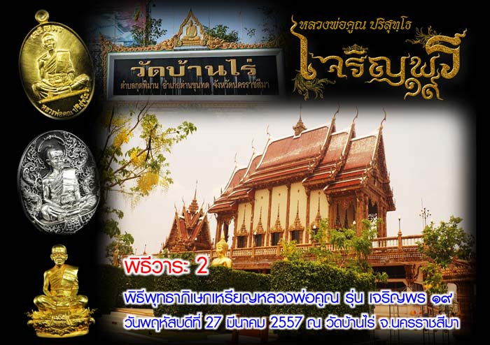 วันนี้..มาดึกมากครับ มองดูเวลา.อ้าว เริ่มขึ้นวันใหม่แล้วเหรอเนี่ย แต่ไม่เป็นไรครับ เอาไว้ตอนเช้าตื่นขึ้นมาค่อยชมกันก็ได้ครับ จะได้รับชมภาพแห่งความประทับใจ และภาพแห่งความทรงจำ กับงานพิธีพุทธาภิเษก "เจริญพร ๑๙" ณ วัดบ้านไร่ อ.ด่านขุนทด จ.นครราชสีมา เมื่อวันพฤหัสบดีที่ 27 มีนาคม 2557 ที่ผ่านมา