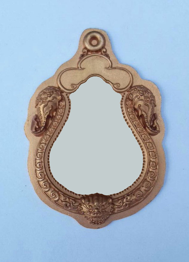 เหรียญเสมาพิมพ์นี้ขนาดเหรียญเท่าเหรียญ 8 รอบหลวงปู่ทิม ออกแบบกนกข้างเป็นช้างเอราวัณเหมือนกับช้างวิหารเทพวิทยาคมวัดบ้านไร่ ส่วนสิงห์ด้านล่างก็เป็นรูปแบบสิงห์ที่อยู่ในวิหารเทพฯวัดบ้านไร่เช่นกัน