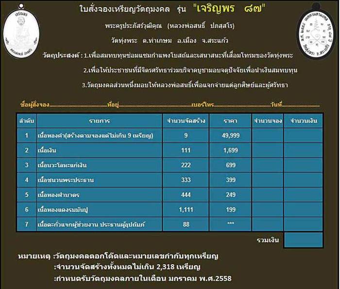 6. ผู้ที่จองได้ ขอความกรุณาโอนเป็นจุดทศนิยม ตามลำดับที่ได้ เช่น ลำดับที่ 1 กรุณาโอน 1000.01