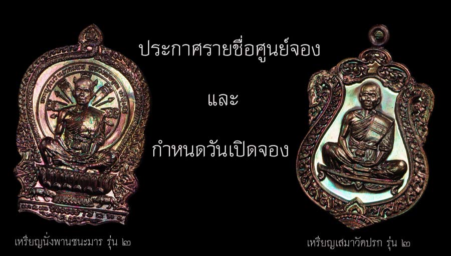 | หัวข้อกระทู้ : ***ประกาศเพิ่มเติม***รายชื่อศูนย์จองเหรียญนั่งพานชนะมาร รุ่น ๒ และเหรียญเสมาวัดปรก รุ่น ๒ |