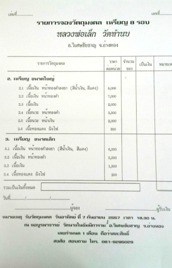 งานบุญล้วนๆนะครับ เงินเข้าวัดทุกบาททุกสตางค์ ไม่มีเอี่ยวนายทุน ไม่มีเปอเซนต์ ไม่เปิดจองตามศูนย์พระเครื่องทั่วไป เปิดจองตามที่ระบุในประกาศเท่านั้นนะครับ และที่วัดนางใน