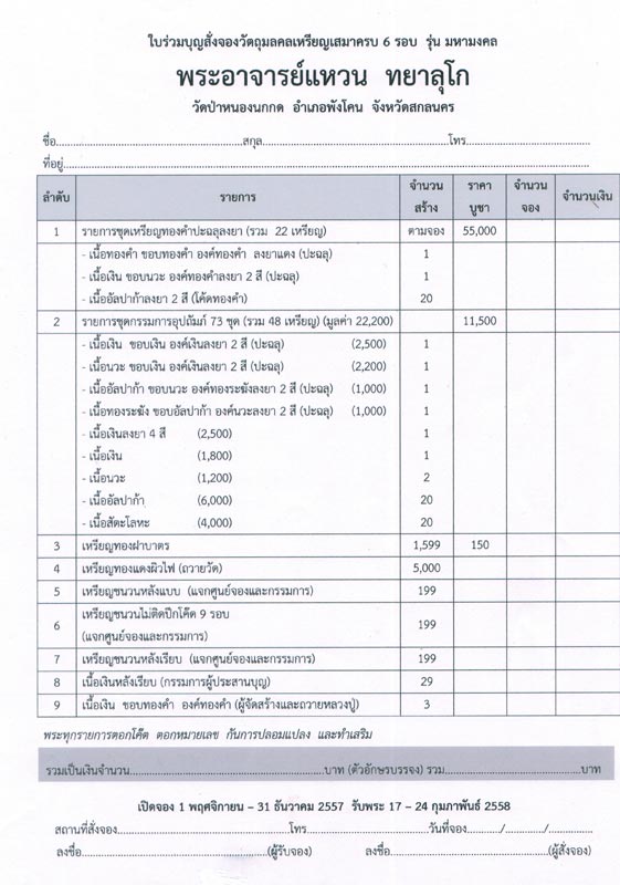 เปิดจอง 1 พฤศจิกายน - 31 ธันวาคม 2557 รับพระ 17 - 24 กุมภาพันธ์ 2558 จากใจ วันชัย วันครรชิต