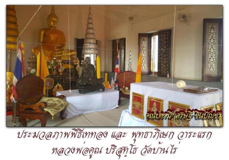 พิธีเททอง และ พิธีพุทธาภิเษก วาระแรกวัตถุมงคลหลวงพ่อคูณ ปริสุทฺโธรุ่น " คูณบารมี เศรษฐีชินบัญชร " ณ อุโบสถวัดบ้านไร่ เมื่อวันที่ 14 ตุลาคม 2557 จุดเทียนชัยโดย พระอาจารย์ทอง สุทฺธสีโล ดับเทียนชัยโดย พระครูวิมลญาณอุดม (พระอาจารย์ติ๋ว) วัดมณีชลขัณฑ์ |