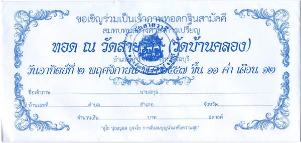 ได้ยินข่าวว่ามีงานทอดกฐินที่วัดบ้านคลอง วันที่ 2 พย. 2557 และจะมีเหรียญแจกด้วย