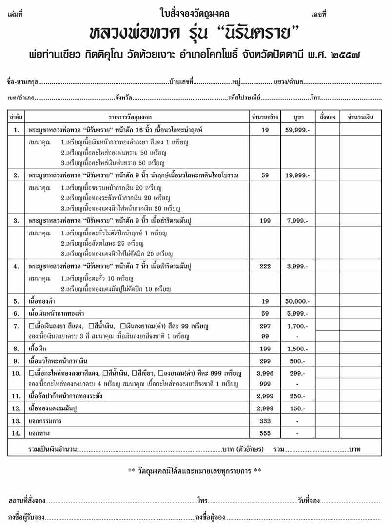 และได้แจ้งรายการและจำนวนจัดสร้างไปแล้วนะครับ