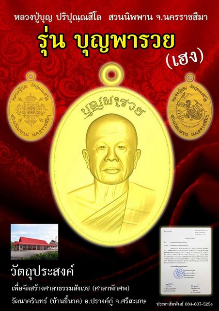 ประชาสัมพันธ์งานบุญ รุ่น "บุญพารวย" หลวงปู่บุญ ปริปุนฺณสีโล สวนนิพพาน (วัดปอแดง) อ.ปักธงชัย จ.นม.