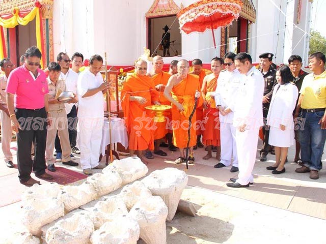 หลวงพ่อเงิน พุทฺธโชติ ประกอบพิธีเททอง นำฤกษ์ วาระแรก ณ มณฑลพิธีหน้าศาลพระเจ้าเสือ เมื่อวันที่ 30 ธันวาคม 2557 ที่ผ่านมา