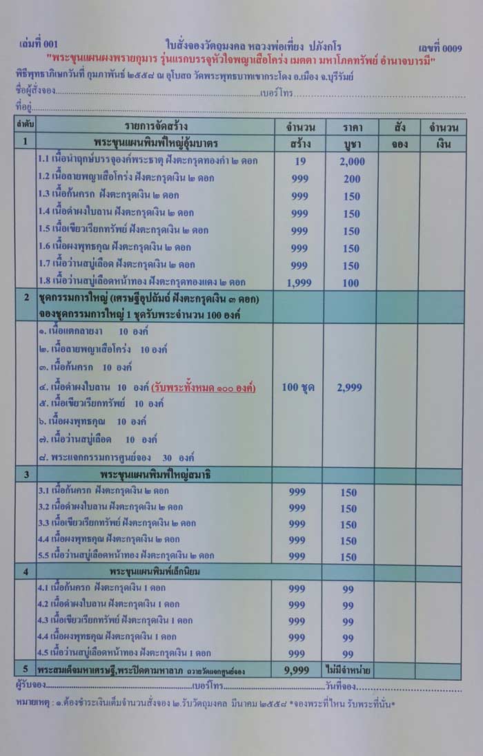 ลูกค้าที่จองพระรุ่นนี้ ถ้ามีความประสงค์อยากจะให้ทางทีมงานออกใบอนุโมทนาบัตร เพื่อนำไปลดหย่อนภาษีเงินได้ประจำปี ทางเรายินดีออกใบอนุโมทนาบัตรให้น่ะครับ ท่านจะจองพระกับศูนย์ไหนก็ได้ เราจะออกให้ครับ ขอให้แจ้งศูนย์จองนั้นๆว่าต้องการใบอนุโมทนาบัตร เพื่อทางศูนย์จองจะได้แจ้งมาทางผม เพือที่จะได้ออกใบอนุโมทนาบัตรให้ครับ |