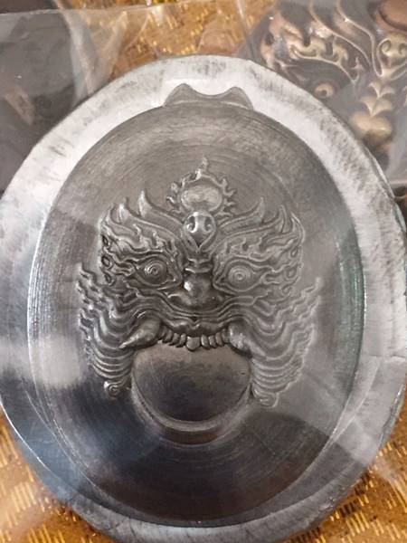 พระราหูหล่อโบราณ เนื้อกะลาตาเดียว หน้าทอง เขียนด้วยเลเซอร์ 3.5 ซม.