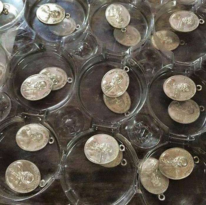 นวโลหะพรายเงิน สำหรับนวะโลหะเหรียญรุ่นแรกหลวงปู่ป่วนนั้น นอกจากจะมีมวลสารที่ใช้ทำนวะครบทั้ง 9 ชนิดแล้ว ครั้งนี้มีเม็ดเงินเก่าผงเงินแก่ เสกมานาน มีอยู่ 1 กระปุกใหญ่ เอามาทำเนื้อนวะพรายเงินจนหมด เงินโบราณน่าจะนำมาทำประโยชน์ได้ก็คราวนี้ เรียกว่าใส่เกิน ใส่ล้น เงินทั้งนั้น เปิดบูชาให้ไม่แพง เพื่อให้สาธุชนได้บูชาของดี ร่วมบูรณะวัดไปพร้อมกัน บอกตรงๆ ว่า สุดคุ้ม ! |