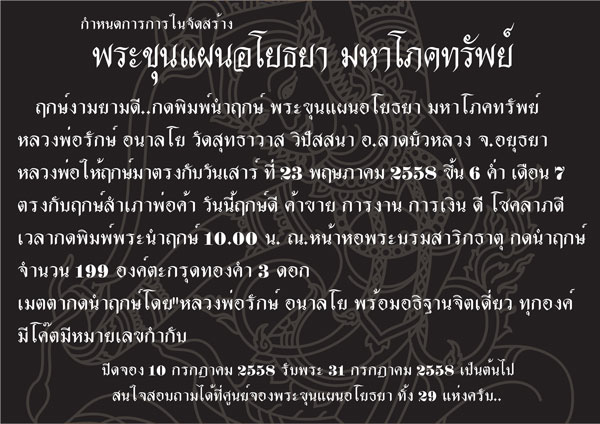 ครั้งแรกครั้งเดียวของพระขุนแผนอโยธยา มหาโภคทรัพย์ สร้างตามเจตนาและนิมิต