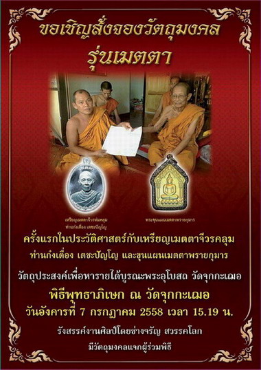 *** พิธีพุทธาภิเษกวัตถุมงคลที่จัดสร้างในครั้งนี้ วันอังคารที่ ๗ กรกฎาคม ๒๕๒๘ เวลาประมาณ ๑๕.๑๙น ณ.พระอุโบสถวัดจุกกะเฌอ ***