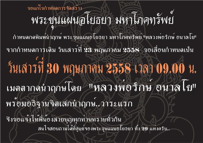 แจ้งเลื่อนวันเป็นวันเสาร์ที่30พฤษภาคม2558