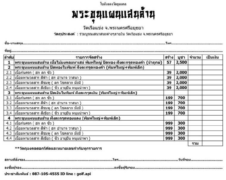รายได้มอบถวายวัดเรือแข่ง เพื่อบูรณเสนานะต่างๆภายใน วัดเรือแข่ง จ.พระนครศรีอยุธยา