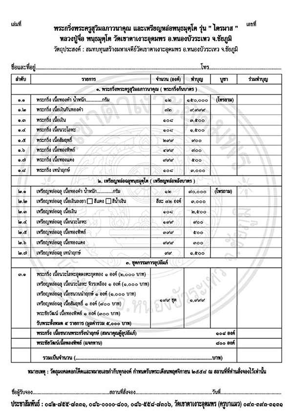 วัตถุประสงค์ สมทบทุนสร้างพระมหาเจดีย์วัดเขาตาเงาะอุดมพร อ.หนองบัวระเหว จ.ชัยภูมิ
