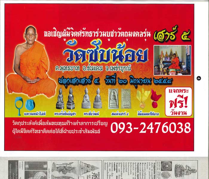 เวลา 13:00 เปิดการจำหน่ายวัตถุมงคลที่วัด |
