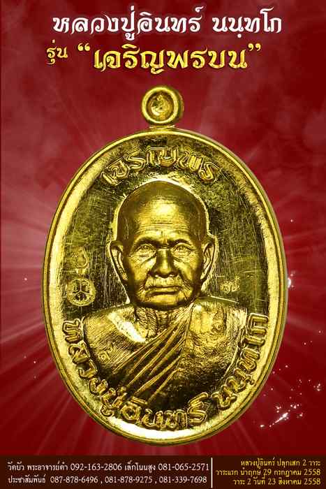 แจ้งกำหนดการ..หลวงปู่อินทร์ ปลุกเสก เหรียญเจริญพรบน วัดบัวโนนสูง 23/8/58