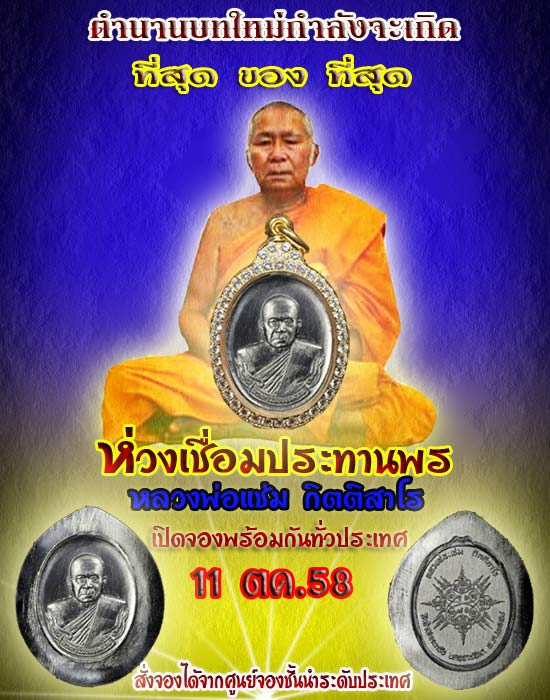 ขออนุญาติประชาสัมพันธ์ ประกาศรายชื่อศูนย์จอง เหรียญห่วงเชื่อมประทานพร หลวงพ่อแช่ม กิตติสาโร (เปิดจอง 11 ตค.58)