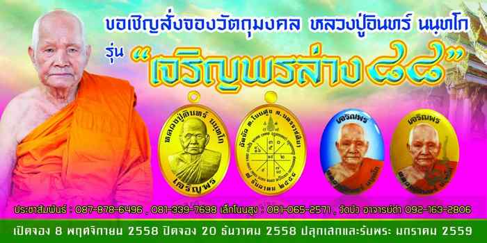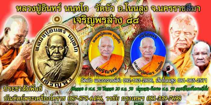รายชื่อศูนย์จอง...หลวงปู่อินทร์ นนฺทโก วัดบัว โนนสูง รุ่น"เจริญพรล่าง" ๘๘