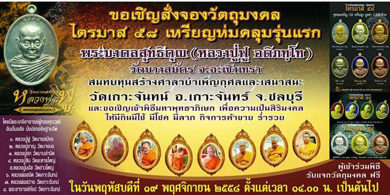 เรียนเชิญทุกท่านเข้ารว่มพิธีพุทธาภิเษกครับ มีวัตถุมงคลแจกครับ