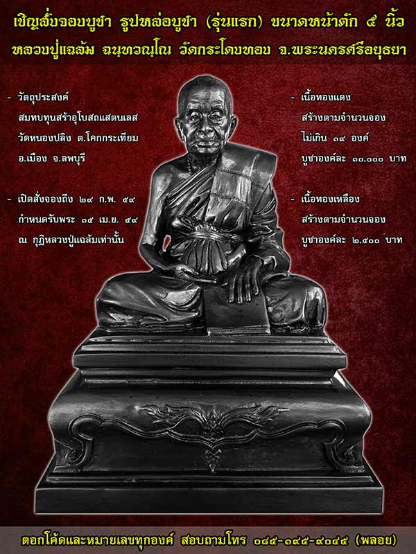 เชิญสั่งจองบูชา รูปหล่อบูชา (รุ่นแรก) หน้าตัก 5 นิ้ว