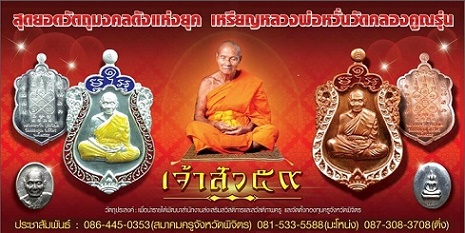 16 มกราคม 2559 นี้ เตรียมพบกับวัตถุมงคล หลวงพ่อหวั่น วัดคลองคูณ "รุ่นเจ้าสัว ๕๙" โดยทีมงานสร้างเดิมจากรุ่นอำเภอตะพานหิน ที่เคยสร้างประวัติศาสตร์ในสายนี้ ยอดจองหมดภายในสองชั่วโมง
