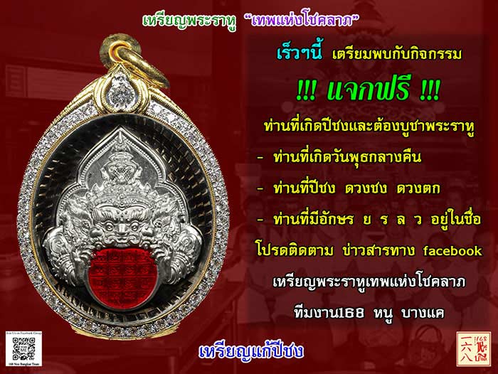 ปล. โปรดติดตาม ข่าวสารทาง facebook เหรียญพระราหู เทพแห่งโชคลาภ ทีมงาน 168 หนู บางแค |