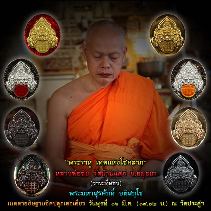 หลังจากที่หลวงพ่อชัย วัดบ้านแดง ได้ทำพิธีอธิษฐานจิตปลุกเสกเดี่ยวกลางแจ้ง วาระแรก "เหรียญพระราหู เทพแห่งโชคลาภ" ในฤกษ์สุริยคราส เมื่อวันพุธที่ 9 มีนาคม ที่ผ่านมา อย่างเข้มขลังศักดิ์สิทธิ์ ตามพิธีตำรับโบราณ โดยเรียบร้อยสมบูรณ์