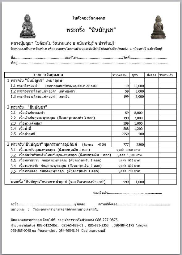 | หัวข้อกระทู้ : เปิดจองพรุ่งนี้พร้อมกันทั่วประเทศ***พระกริ่งชินบัญชร หลวงปู่บุญมา วัดบ้านแก่ง จ.ปราจีนบุรี*** |