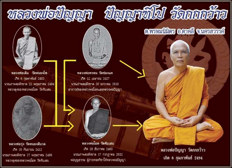 หลวงพ่อปัญญา วัดกกกว้าว เกจิ ที่สืบทอดวิชาจากบูรพาจารย์ หลวงพ่อเดิม วัดหนองโพ หลวงพ่อรุ่ง วัดหนองสีนวล หลวงพ่อพรหม วัดช่องแค และหลวงพ่อโอด วัดจันเสน