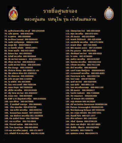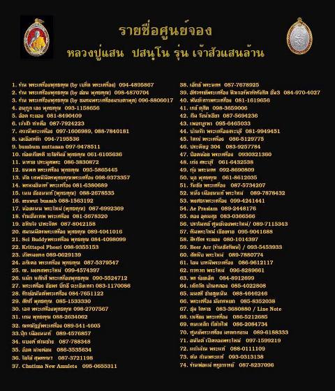 | หัวข้อกระทู้ : แจ้งข่าว!!ประกาศรายชื่อศูนย์จอง"เหรียญเจ้าสัวแสนล้าน"หลวงปู่แสน ปสนฺโน |