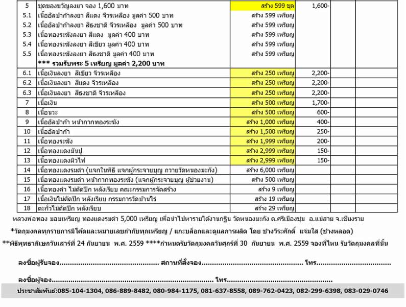 รายการจำนวนจัดสร้างปรับเปลี่ยนใหม รุ่น มหาเศรษฐี พระครูวิสุทธิ์วิทยาคม (หลวงพ่อทอง สุทธฺสีโล)