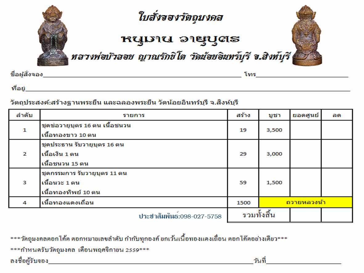 พระยาสุเรนทร์ รับจองพระใหม่ 098-825-3537
