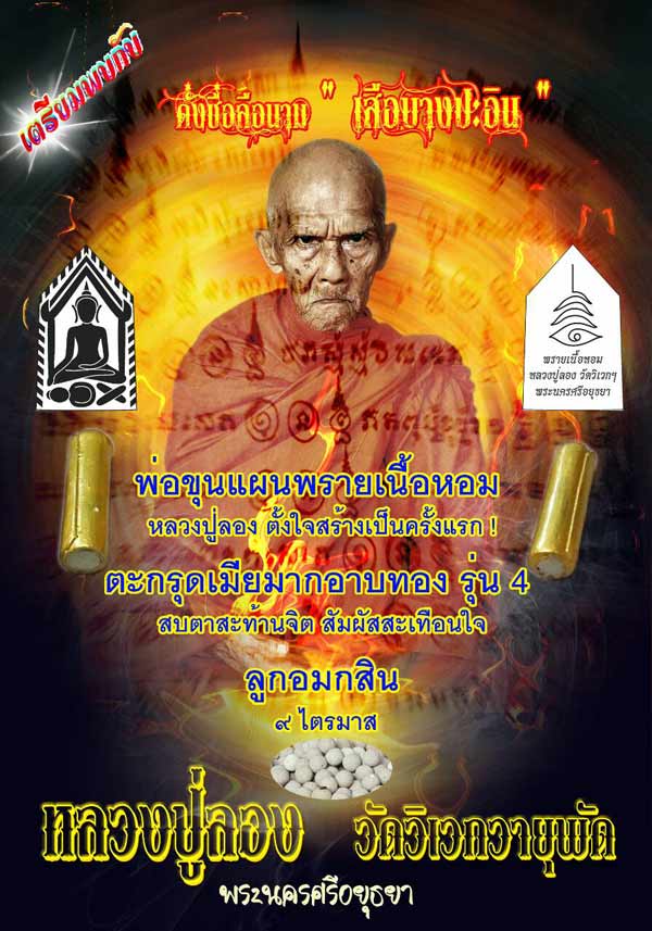 หลวงปู่ลององค์นี้ ท่านเป็นหลานแท้ๆของหลวงปู่พริ้ง วัดบางปะกอก ศิษย์เอกหลวงพ่อโอภาสี อาศรมบางมด หลวงปู่พริ้ง วัดบางปะกอก ครอบครูหลวงให้ตั้งแต่เด็ก หลวงปู่พริ้ง วัดบางปะกอกปั้นลูกอมลูกยอดให้กินตั้งแต่ 5 ขวบ บอกนี่แหละของดีวิชาทั้งนั้น ต่อไปจะเก่งไม่แพ้ใคร จิตจะสุกสว่าง ร่างจะคงเหนียว สมัยสงครามโลกเครื่องบินทิ้งระเบิด ลงตรงไหนตายตรงนั้นไม่มีใครรอด หลวงปู่ลองรอดมาแล้ว ระเบิดด้าน! มีครูดีหลวงปู่พริ้งเป่าพระหม่อมให้วิชา หลวงปู่พริ้ง วัดบางปะกอก เกจิดังอินโดจีน กรมหลวงชุมพรเขตอุดมศักดิ์ถวายตัวเป็นศิษย์ให้ความเลื่อมใสนำพระโอรสมาบวชถึง 3 พระองค์ หลวงปู่พริ้งอภินิหารมีมาก เสกเสื้อยันต์กระพือว่อนในโบสถ์ โด่งดังตั้งแต่อดีตจนถึงปัจจุบัน ได้หลวงปู่ลอง หลานแท้ๆสืบวิชา วิชาจึงไม่สูญ หลวงปู่พริ้งให้กินข้าวก้นบาตรตั้งแต่เด็ก โตมาจึงได้ของดีมาเยอะ มีวิชาพอตัว เริ่มเป็นหนุ่มจึงมีนิสัยไม่กลัวใคร หลวงปู่ลองได้ศึกษาวิชาอาคมเสกข้าว เสกน้ำ เสกแป้ง พุทธคุณด้านเสน่ห์เมตตามหานิยม จึงลือกันว่าท่านเป็นหนุ่มเนื้อหอม นักเลงหนังเหนียว สมัยหนุ่มๆยังไปเรียนวิชากับหลวงพ่อโอภาสี ที่วัดบวร หลวงพ่อโอภาสีล่องหนหายตัวได้วิ่งตามท่านไม่ทัน เกิดศรัทธาตามหลวงพ่อไปฝึกเตโชกสิณที่อาศรมบางมด พอโตเป็นทหารออกศึก รบสงครามหลายสมอรภูมิ ชนะทุกสมรภูมิเดือด ใช้ชีวิตทางโลกจนเบื่อ ออกบวช และเดินธุดงค์ตลอด มาอยู่วัดวิเวกวายุพัด ตั้งนานอยากบูรณะวัดวาจึงได้ทำของขลังของดีให้คนใช้ เพื่อว่าเขาจะได้กลับมาช่วยวัด ตอนแรกๆ คนไม่รู้จักท่าน ท่านสร้างอะไรมาก็เฉยๆ ไม่สนใจ แต่พอได้ใช้ของท่านเท่านั้น สุดยอดจริงๆ ตั้งแต่ตะกรุดเมียมาก ทำให้หนุ่มๆมีประสบการณ์ เหลือเฟือ ในพื้นที่บางปะอินหาเช่าตะกรุดจากดอกละ 300 ถึงดอกละ 2,000 บาท ทุกวันนี้หาไม่ได้แล้ว พญานกเรียกเงินวายุภักษ์ปักษา รุ่นที่แล้ว ช่วยให้พ่อค้ารถมือ 2 ขายรถหมดเต้นท์ เสี่ยใหญ่บางปะอินทำแจ็คพอตแตกที่เขมรรับเงินหลายล้าน อีกคนถูกหวยชุดสิบล้านมาแล้ว ไม่ถึงปีเจอประสบการณ์โชคลาภกันทุกคน อีกคนเปิดบริษัทใหม่กำลังจะเจ๊งอ่านหนังสือเห็นหลวงปู่ลอง จึงลองเดินทางมาขอพึ่งพาเดินทางมากราบหลวงปู่ที่วัด หลวงปู่เห็นหน้าโยนนกเรียกเงินให้ 1 ตัวกลับไปไม่นานบริษัทฟื้นตัวรอดตายใหญ่เพียงไม่นาน |