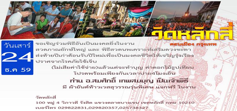 ส่งท้ายปีเก่าต้อนรับปีใหม่เพื่อเป็นมงคลชีวิตให้เจริญรุ่งเรืองปราศจากโรคภัยไข้เจ็บ ในวันเสาร์ที่ 24 ธันวาคม 2559