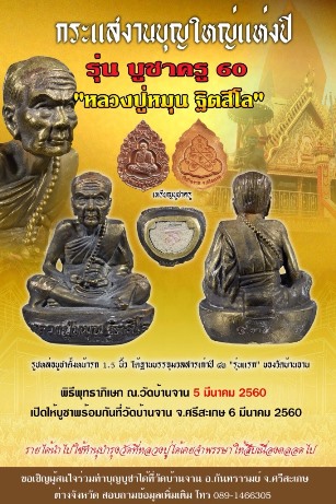 ขอเชิญร่วมทำบุญบูชาวัตถุมงคลแห่งปี ๖๐