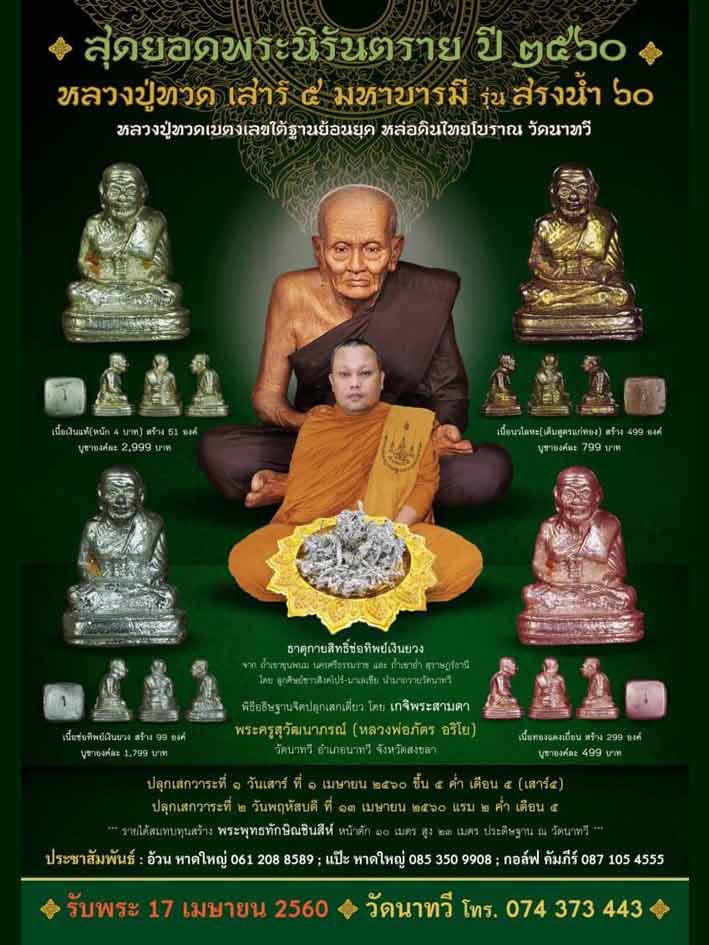รายชื่อศูนย์จอง หลวงพ่อทวด เลขใต้ฐาน "เสาร์๕" วัดนาทวี จังหวัดสงขลา