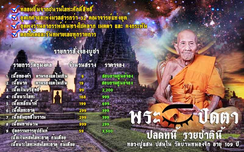 ****ด้วยจำนวนจัดสร้างไม่มาก และพิธีการที่ซับซ้อนก็เชื่อว่า พระรุ่นนี้จะเป็นอีกรุ่นที่ดีทั้งนอกและใน เป็นของหายากสืบต่อไปในอนาคตอย่างแน่นอน |