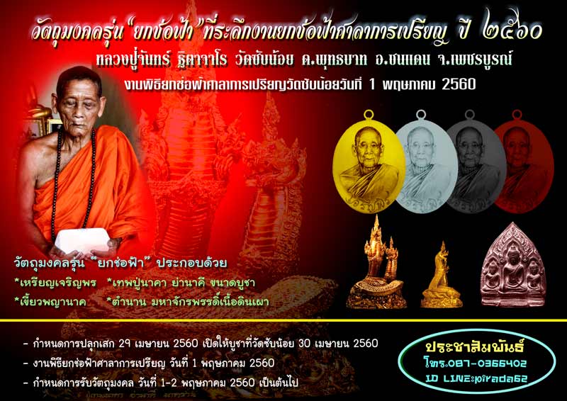 เปิดจองคืนนี้ วัตถุมงคลเจริญพร ลป.จันทร์ วัดซับน้อย รุ่นยกช่อฟ้า. (โปรดอ่านกติกาการจองก่อนครับ)