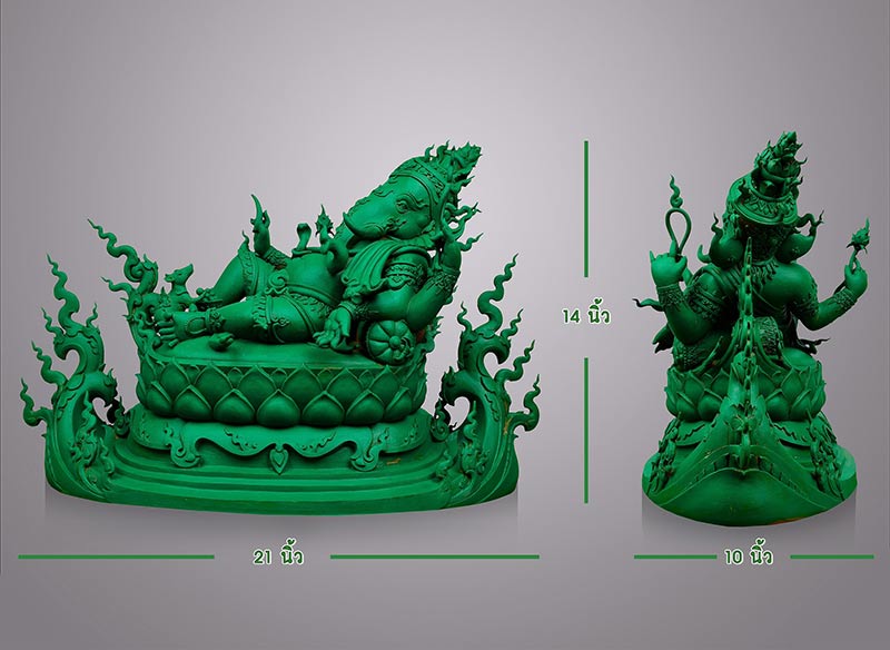 ประติมากรรมชิ้นนี้ ผมต้องการถ่ายทอดเทวลักษณ์ของมหาเทพ ให้ผู้คนที่พบเห็น มองเเล้ว รู้สีกถึงความผ่อนคลาย คลี่คลายสิ่งที่ทุกข์ร้อนภายในใจ ออกมาในรูปเเบบขณะบรรทม พร้อมกับการเสวยอาหาร ซึ่งเสมือนอยู่ในช่วงอารมณ์ที่ผ่านพ้นอุปสรรคหรือภาระมากมาย จนสำเร็จดั่งที่มุ่งหมายไว้เข้าสู่ช่วงเวลาเเห่งการเฉลิมฉลองพร้อมกับบริวาร คือหมูมุสิกะ เปรียบดังบริวาร เพื่อนพ้อง ทุกคน ที่เข้ามามีส่วนรวม ในการฉลองชัยชนะครั้งนี้ อีกด้วย