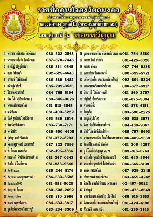 ประกาศรายชื่อศูนย์จอง เหรียญเสมาคู่บารมี รุ่น "ทองทวีคูณ" หลวงพ่อทอง วัดบ้านไร่ จ.นครราชสีมา