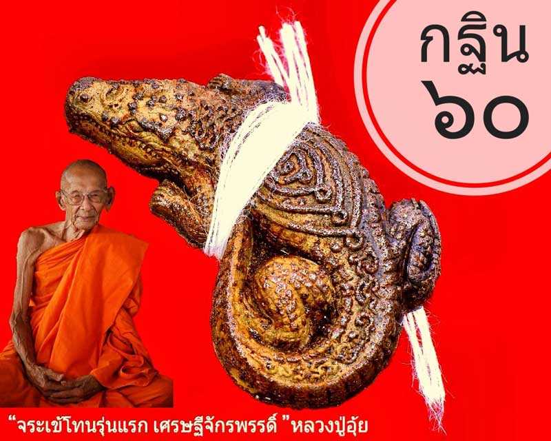 หลวงปู่อุ้ย โบราณกล่าวว่า เศรษฐีผู้หนึ่งเป็นคนขี้เหนียว ไม่เคยคิดทำบุญสร้างกุศล ชอบนำสมบัติ ไปฝังไว้ที่ท่าน้ำหน้าบ้าน ครั้นตายลงจึงไปเกิดเป็นจระเข้เฝ้าสมบัติของตน ได้รับความทุกขเวทนา จึงไปเข้าฝัน ภรรยาให้มาขุดสมบัติ ไปทำบุญกุศล ภรรยาจึงจัดให้มีการทอดกฐินขึ้น จระเข้เศรษฐีนั้นก็บังเกิดความยินดี ว่ายน้ำตามขบวนเรือแห่องค์กฐินไป แต่ยังไม่ทันถึงวัดก็หมดแรง ไปต่อไม่ไหว จึงบอกภรรยาให้วาดรูปจระเข้ ใส่ในธงไปแทน จระเข้โทน เศรษฐีจักรพรรดิ์ ในตำราโบราณ กล่าวถึงคุณวิเศษมากมายเหลือคณานับ ป้องกันคุ้มภัย แคล้วคลาด ถอดถอนเสน่ห์ยาแฝด พกใส่กระเป๋าเสื้อ ผูกติดเอว คล้องคอ ได้ทั้งสิ้น พ่อค้าแม่ค้าแช่ขันบริกรรมคาถาทำน้ำมนต์ใช้อาบประจำ จะไต่เต้าเจ้าสัวแสนทะนานทอง ลาภเต็มห้องทองเต็มไห ขุนนางใดมีไว้ดีนักแล จักให้คุณเป็นถึงท้าวพระยาพานทอง ทรัพย์สินสิ่งของเต็มวัง อีกทั้งช้างม้าวัวควายนับได้เหลือหลาย หลวงปู่ท่านสั่งสิ่งอาเพศ อาถรรพ์ อัปมงคล ทุกข์ภัยพิบัติ ทั่งยาสั่งให้อันตรธาน กล่าวโดยย่อ ตำราจระเข้โทนที่ได้สร้างขึ้นมา ที่จะส่งผลให้แก่ผู้บูชาดังนี้ 1. มีมหาอำนาจสูง คุ้มครอง ป้องกัน แคล้วคลาดภยันตรายต่างๆ 2. คุ้มครองเยี่ยม ป้องกัน ภูตผีปีศาจเกรงกลัว 3. แก้กันเสนียดจัญไรเห็นผล ถอนเสน่ห์ยาแฝดต่างๆ (โดยการทำน้ำมนต์แช่ลงในน้ำแล้วเอาน้ำมาดื่มหรืออาบ) 4. มีอำนาจทั้งทางน้ำ และบก ตลอดการเดินทาง 5. ทางเมตตา ค้าขาย จะปรากฏต่อผู้นำไปใช้ รู้เอง 6. มีโชค มีลาภ บังเกิดทรัพย์สมบัติ ทองเต็มไห เงินเต็มบ้าน " ฉัน ตั้งใจอยู่อย่างสันโดษมาจนป่านนี้แล้ว จะทำจะเสกของดีทั้งที ดีกว่าก้อนหิน ศักสิทธิ์กว่าท่อนไม้นิดเดียว ฉันไม่ทำดีกว่า เสียชื่อครูบาอาจารย์ฉันเปล่า ๆ ฉันเสกของตามตำราหลวงพ่อเขียน หลวงพ่อพวง หลวงพ่อหวาน ต้องมีวิมานแก้วครอบทุกชิ้น ท่านสั่งไว้ จำไว้ ของอย่างนี้ ไม่ใช่ของเล่นๆอย่าทำแบบสุกเอาเผากิน เอาไปแล้วต้องเปลี่ยนดวง พลิกชีวิตคนได้ นะ " นี่แหละ ช้างเผือกบนเขา ตัวจริง !! กฐิน ๖๐ หลวงปู่อุ้ย วัดคลองคล้า เมืองเพชรบูรณ์ ห้ามพลาดเด็ดขาด !!! |
