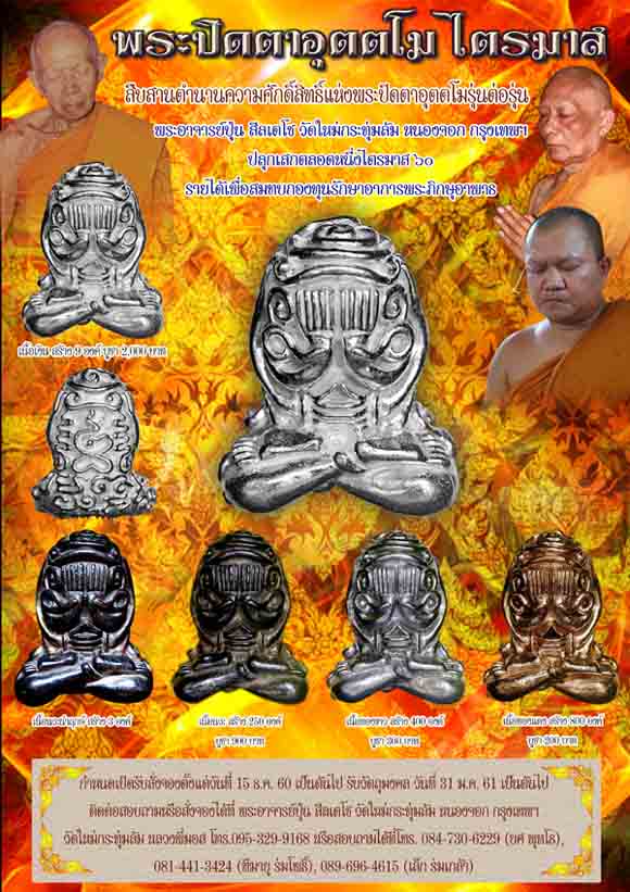 พระปิดตาอุตตโมไตรมาส 60 กำหนดเปิดจองวันที่ 15 ธ.ค.นี้เป็นต้นไป กำหนดรับวัตถุมงคล วันที่ 15 ม.ค. 61