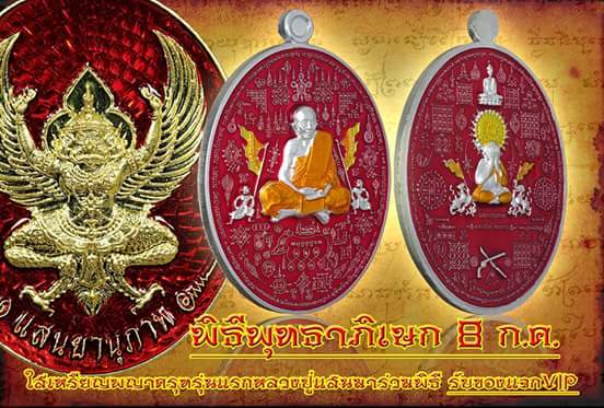 ปล.สำหรับท่านที่แขวนเหรียญพญาครุฑหลวงปู่แสน รุ่นแสนยานุภาพ เข้าร่วมพิธีมีของที่ระลึกพิเศษให้อีกต่างหากนะครับ ขอบคุณครับ |