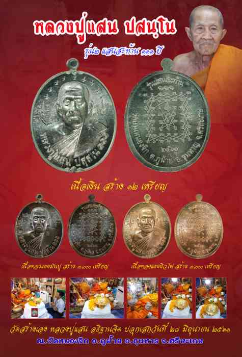 หลวงปู่แสน ปสนฺโน ปลุกเสก เหรียญ รุ่น ๒ แสนสะท้าน ๑๑๑ ปี วัดจัดสร้าง เอง สร้างน้อยมาก