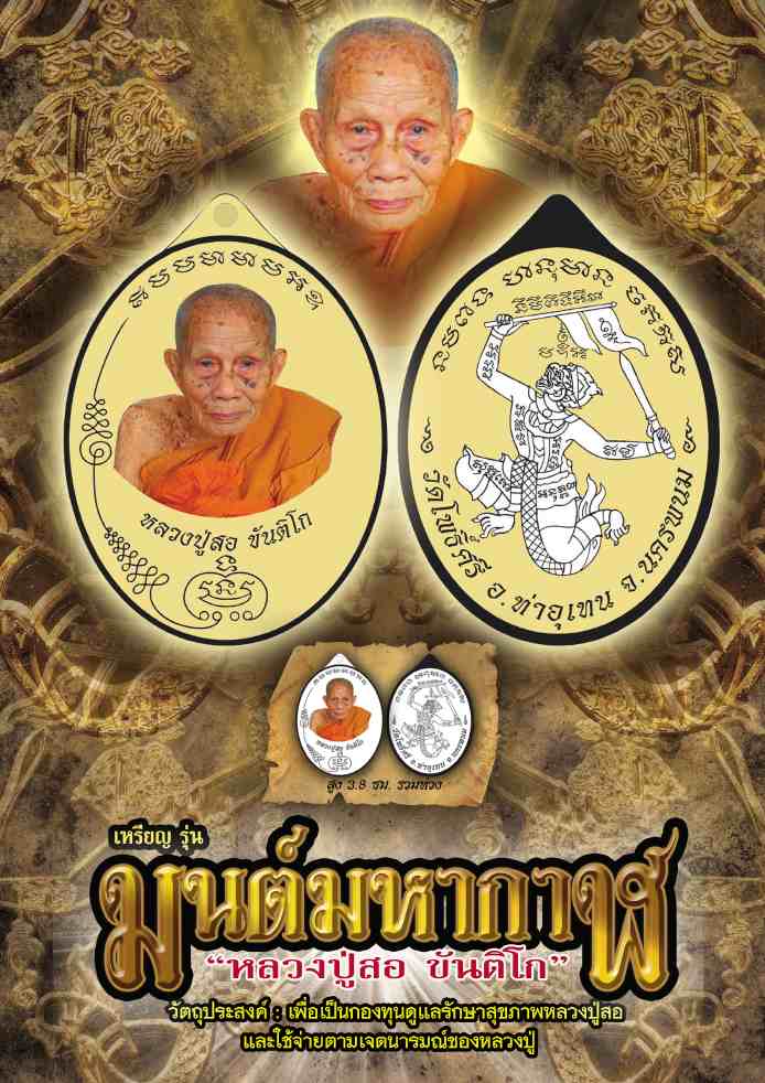 งานเหรียญตะกั่วลองพิมพ์ หลวงปู่สอ (อายุ๑๑๓ปี) หลังหนุมานเชิญธง รุ่นมนต์มหากาฬ เนื้อตะกั่วลองพิมพ์70%