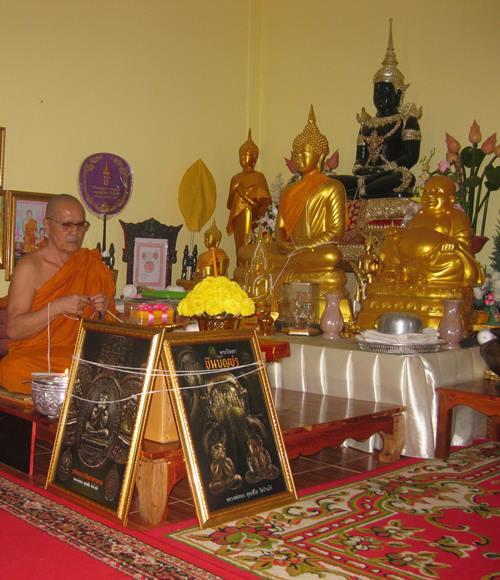 ภาพพิธีอธิษฐานจิตปลุกเสกวัตถุมงคล หลวงพ่อทอง สุทฺธสีโล วัดบ้านไร่ รุ่น เมตตามหานิยม